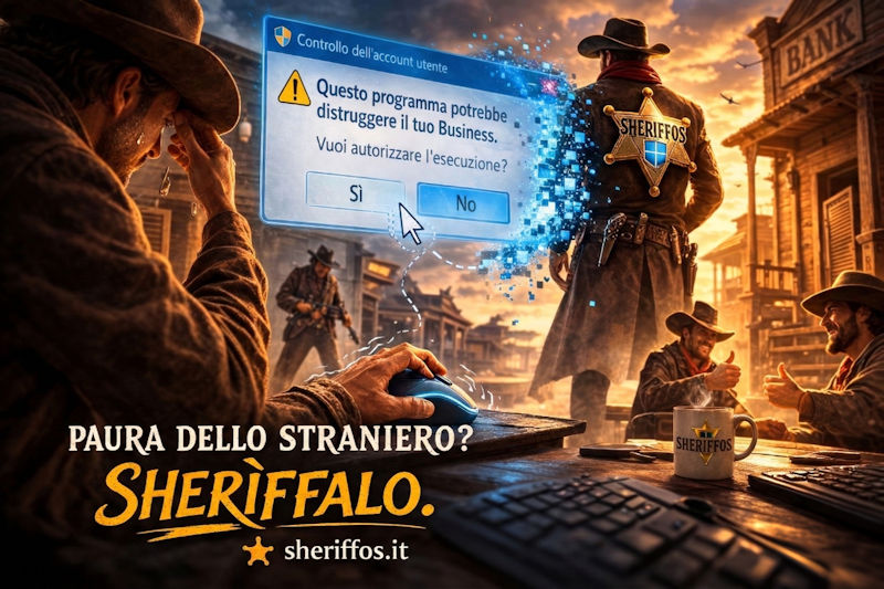 Windows ti chiede ogni giorno di fidarti di software che non conosci. Programmi stranieri bussano alla porta — e tu non sai mai se lasciarli entrare. Sheriffos decide al posto tuo, in tempo reale.