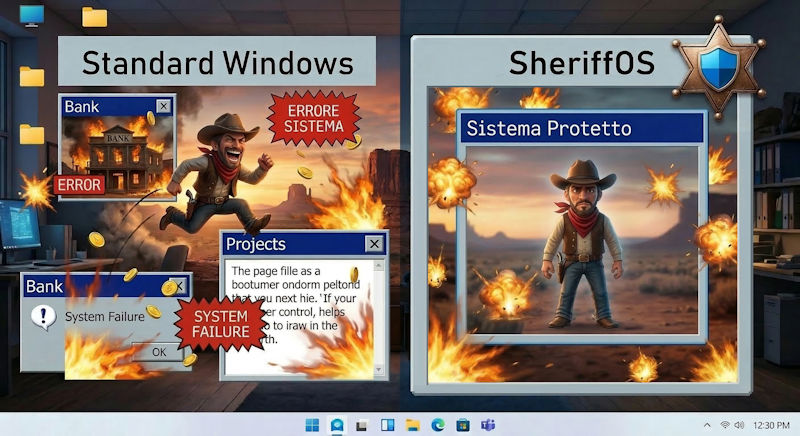 Windows ti chiede ogni giorno di fidarti di software che non conosci. Programmi stranieri bussano alla porta — e tu non sai mai se lasciarli entrare. Sheriffos ti protegge, in tempo reale.